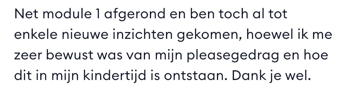 Verandering is zelden gemakkelijk. Maar na maanden of misschien zelfs jaren van ploeteren en hopen, is dit misschien wel het moment om te kiezen voor een andere weg. Een weg die jou rust, lucht en ruimte kan geven — en die de kwaliteit van je leven blijvend kan verbeteren. Je leert het in deze cursus. Die verandering, is ALTIJD de moeite waard!